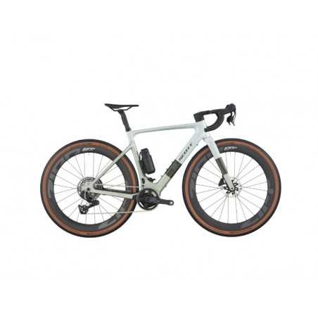FrameSolace eRIDE Disc HMX, ride geometry, Syncros Cable Integration System, TQ HPR60, UDH Interface, Range Extender Ready ForkSolace eRIDE HMX Flatmount Disc, 1 1/4"-1 1/2" Eccentric Carbon steerer Drive UnitTQ HPR60 Mid Motor drive 60Nm max Torque, EU: 25kmh - INT: 20mph - US: 28mph BatteryTQ Internal 360Wh + xTra Power Bottle Cage battery 160Wh DisplayTQ HPR Color, Bluetooth, ANT+, Dedicated Smartphone app ChargerTQ 4A 100-240V Rear DerailleurSRAM FORCE XPLR AXS, 13 Speed Electronic Shift System CranksetPraxis TQ Carbon ChainringSRAM X-Sync 42T ChainSRAM FORCE CassetteSRAM FORCE XPLR XG1371, 10-46T BrakesSRAM FORCE AXS HRD Shift-Brake System Front Disc RotorSRAM Paceline X CL, 160mm Rear Disc RotorSRAM Paceline X CL, 160mm GripsSyncros RC Bartape HandlebarSyncros Creston iC SL X, Carbon combo SeatpostSyncros Duncan SL iL D-shape SeatSyncros Tofino R SL Cut-out HeadsetAcros AIF-1135 WheelsetZIPP 303 XPLR SW Carbon Tubeless disc-brake, 24 Front 12x100mmTA /24 Rear 12x142mmTA , Syncros Axle w/Removable Lever with Tool Front TireSchwalbe G-One Overland PRO Evo, 700x50C Rear TireSchwalbe G-One Overland PRO Evo, 700x50C.