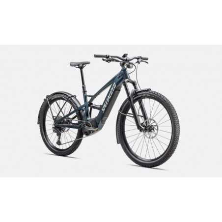 E-Bike Motor Specialized 2.0, 70Nm torque, custom tuned motor, 250W nominal Battery Specialized U2-710, alloy casing, state of charge display, 710Wh UI/Remote MasterMind TCD, w/handlebar remote, built-in anti-theft feature, Bluetooth® connectivity, customizable display pages Charger Custom charger, 42V4A w/ Rosenberger plug, 100-240V Wiring Harness Custom wire harness Frameset Frame E5 Aluminum, full suspension, mullet style for M-XL, bottom bracket motor mount, fully integrated & lockable downtube battery, internal cable routing, lock and front rack mount Seat Binder Alloy, 38.6mm Suspension Rear Shock RockShox Deluxe Select R, rebound adjust, 45x190mm Fork RockShox 35 Silver TK, lockout, 130mm, fender mounts Brakes Front Brake Sram Code R, 4-piston caliper, hydraulic, 200mm rotor Rear Brake Sram Code R, 4-piston caliper, hydraulic, 180mm rotor Drivetrain Shift Levers SRAM GX Eagle, trigger, 12-speed, single click Rear Derailleur SRAM GX Eagle, 12-speed Cassette SRAM NX Eagle PG-1230, 12-speed, 11-50t Chain SRAM NX Eagle, 12-speed Crankset Praxis forged M30, custom offset Chainrings Sram X-Sync Eagle, 104BCD, 38T, EMTB specific, steel Wheels & Tires Rims Specialized 29/27.5, hookless alloy, 30mm inner width, tubeless ready Front Hub Specialized alloy, disc, sealed cardridge bearings, 6-bolt, 15x110mm thru-axle, 28h Rear Hub Specialized alloy, disc, sealed cartridge bearings, 6-bolt, 12x148mm thru-axle, 28h, HG Freehub Spokes DT Swiss Industry Front Tire Ground Control Grid T7, 2Bliss ready, S: 27.5x2.35, M-XL: 29x2.35 Rear Tire Ground Control Grid T7, 2Bliss Ready, 27.5x2.35 Inner Tubes Standard 40mm PV 29/27.5x1.75-2.4 Cockpit Stem Specialized Stealth Stem, alloy, 14 deg, 31.8mm, 75mm length, integrated TCD mount Handlebars Specialized Trail, Alloy, 8-degree backsweep, 6-degree upsweep, 27mm rise, 31.8mm clamp, S: 720mm, M-XL: 750mm Grips Specialized Body Geometry Contour, lock-on Saddle Bridge Sport, Steel rails, 155mm SeatPost TranzX dropper, infinite adjustable, two-bolt head, bottom mount cable routing, Handlebare remote, 34.9mm, S: 150mm, M: 170mm, L/XL: 200mm Accessories Pedals Specialized Commuter w/ grip tape & reflectors Headlight Lezyne EBIKE SUPER STVZO E600, 600 Lumen, 12V, Stem mounted Taillight Lezyne EBIKE FENDER REAR STVZO, wide light spread, 12V Rack Specialized Pannier-rack, alloy tubing, max. 20kg load Bike Lock Turbo System Lock Fenders Specialized DRYTECH fenders, 65mm width, stainless steel fenderstays Kickstand Specialized kickstand, 40mm mount Bell Specialized brass bell Weight 23.3kg (51 lb, 5.9 oz).