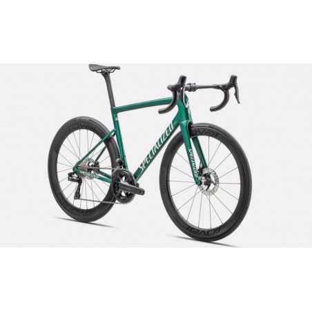 Frameset Frame Tarmac SL8 FACT 10r Carbon, Rider First Engineered™, Win Tunnel Engineered, Clean Routing, Threaded BB, 12x142mm thru-axle, flat-mount disc Suspension Fork FACT 10r Carbon, 12x100mm thru-axle, flat-mount disc Brakes Front Brake Shimano Ultegra Di2 R8170, hydraulic disc 160mm rotor Rear Brake Shimano Ultegra Di2 R8170, hydraulic disc 140mm rotor Drivetrain Shift Levers Shimano Ultegra Di2 R8170, hydraulic disc Front Derailleur Shimano Ultegra Di2 R8150, braze-on Rear Derailleur Shimano Ultegra Di2 R8150, 12-speed Cassette Shimano Ultegra, 12-speed, 11-30t Chain Shimano Ultegra, 12-speed Crankset Shimano Ultegra R8100 with 4iiii power meter Chainrings 52/36T Bottom Bracket Shimano Threaded BSA Wheels & Tires Front Tire S-Works Turbo, 2BR, 700x26mm Front Wheel Roval Rapide CL II, 21mm internal width carbon rim tubeless ready, Win Tunnel Engineered, DT for Roval 350 hub, DT Swiss Revolution spokes, 51mm depth Rear Tire S-Works Turbo, 2BR, 700x26mm Rear Wheel Roval Rapide CL II, 21mm internal width carbon rim tubeless ready, Win Tunnel Engineered, DT for Roval 350 hub, DT Swiss Revolution spokes, 60mm depth Inner Tubes Turbo Ultralight, 60mm Front, 80mm Rear, Presta valve Cockpit Stem Tarmac integrated stem, 6-degree Handlebars Roval Rapide Handlebar, carbon Tape Supacaz Super Sticky Kush Saddle Body Geometry Power Pro, hollow titanium rails SeatPost S-Works Tarmac SL8 Carbon seat post, FACT Carbon, 15mm offset Seat Binder Tarmac integrated wedge Weight 7.16 kg (15 lb, 12.6 oz).