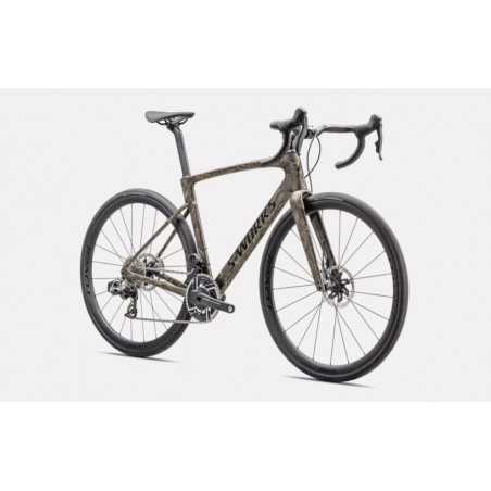 Frameset Frame FACT 12R, Rider First Engineered™ (RFE), FreeFoil Shape Library tubes, threaded BB, 12x142mm thru-axle, flat-mount disc Suspension Fork Future Shock 3.3 w/ Smooth Boot, FACT Carbon 12x100mm, thru-axle, flat-mount disc Brakes Front Brake NEW SRAM RED, Hydraulic Disc, 160mm Rear Brake NEW SRAM RED, Hydraulic Disc, 160mm Drivetrain Shift Levers NEW SRAM RED AXS, 12-speed Front Derailleur NEW SRAM RED AXS, braze-on Rear Derailleur NEW SRAM RED AXS, 12-speed Cassette NEW SRAM RED XG-1290, 12-speed, 10-36t Chain NEW SRAM RED 12-speed Crankset NEW SRAM RED AXS Power Meter Chainrings 46/33 Bottom Bracket SRAM DUB BSA 68 Wheels & Tires Front Tire S-Works Mondo 2BR, 700x32c Front Wheel Roval Terra CLX II, 25mm internal width, 32mm depth, 21h, Tubeless ready, Roval LFD hub with ceramic SINC bearings, Centerlock disc, DT Swiss Aerolite spokes Rear Tire S-Works Mondo 2BR, 700x32c Rear Wheel Roval Terra CLX II, 25mm internal width, 32mm depth, 24h, Tubeless ready, Roval LFD hub with ceramic SINC bearings, Centerlock disc, DT Swiss Aerolite spokes Inner Tubes 700x28/38mm, 60mm Presta valve Cockpit Stem S-Works Future Stem, w/ Integrated Computer Mount Handlebars S-Works Carbon Hover Drop 125mm, Reach 75mm, w/Di2 hole Grips Supacaz Super Sticky Kush Saddle S-Works Power with Mirror SeatPost S-Works Pave Seat post Seat Binder Hidden drop clamp Weight 7.2 kg (15 lb, 14.0 oz).