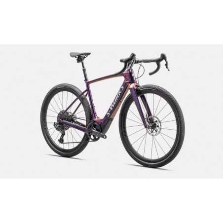 E-Bike Motor New Specialized 1.2 SL Custom Lightweight Motor Battery Specialized SL1-320, fully integrated, 320Wh UI/Remote Specialized MasterMind TCU, percentage of remaining charge, 120 possible display configurations, MicroTune assist adjustment, over-the-air updates, ANT+/Bluetooth®, w/Handlebar remote Charger Custom charger, 48V System w/ SL system charger plug Wiring Harness Custom Specialized wiring harness w/ charge port Frameset Frame FACT 11r carbon, front/rear thru-axles, fully integrated down tube battery, internal cable routing, fender/rack mounts, 12x142mm Seat Binder Specialized Alloy, 31.8 Suspension Fork Future Shock 3.3 w/ Smooth Boot, 12x100mm thru-axle, flat-mount disc Brakes Front Brake SRAM Red, hydraulic disc, 180mm Rear Brake SRAM Red, hydraulic disc, 160mm Drivetrain Shift Levers SRAM Red AXS Rear Derailleur SRAM Red AXS Cassette SRAM XG 1295, 12-Speed, 10-50t Chain SRAM XX1 Eagle Crankset SRAM Carbon DUB Crank Arms Chainrings SRAM X-Sync Eagle, 107 BCD, 44T Wheels & Tires Front Tire Tracer Pro, 700x42c Front Wheel Roval Terra CLX II, 25mm internal width, 32mm depth, 21h, Tubeless ready, Roval LFD hub with ceramic SINC bearings, Centerlock disc, DT Swiss Aerolite spokes Rear Tire Tracer Pro, 700x42c Rear Wheel Roval Terra CLX II, 25mm internal width, 32mm depth, 24h, Tubeless ready, Roval LFD hub with ceramic SINC bearings, Centerlock disc, DT Swiss Aerolite spokes Inner Tubes 700x32/50mm, 48mm Presta valve Cockpit SeatPost SRAM Reverb AXS XPLR Dropper, 49cm-52cm: 50mm drop Stem S-Works Future Stem w/ Integrated Computer mount Handlebars Roval Terra, carbon, 103mm drop x 70mm reach x 12º flare Tape Supacaz Super Sticky Kush Saddle Body Geometry S-Works Power Weight 12.96kg (28 lb, 9.2 oz).