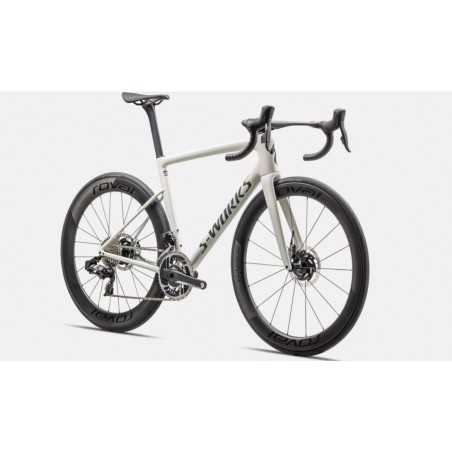 Frameset Frame S-Works Tarmac SL8 FACT 12r Carbon, Rider First Engineered™, Win Tunnel Engineered, Clean Routing, Threaded BB, 12x142mm thru-axle, flat-mount disc Suspension Fork S-Works FACT 12r Carbon, 12x100mm thru-axle, flat-mount disc Brakes Front Brake SRAM Red eTAP AXS, hydraulic disc 160mm rotor Rear Brake SRAM Red eTAP AXS, hydraulic disc 160mm rotor Drivetrain Shift Levers SRAM Red eTap AXS Front Derailleur SRAM RED eTAP AXS, braze-on Rear Derailleur SRAM RED eTAP AXS, 12-speed Cassette SRAM RED XG-1290, 12-speed, 10-33t Chain SRAM RED 12-speed Crankset SRAM RED AXS Power Meter Chainrings 48/35T Bottom Bracket SRAM DUB BSA 68 Wheels & Tires Front Tire S-Works Turbo Rapidair 2BR, 700x26mm Front Wheel Roval Rapide CLX II, Tubeless, 21mm internal width carbon rim, 51mm depth, Win Tunnel Engineered, Roval AFD hub, 18h, DT Swiss Aerolite spokes Rear Tire S-Works Turbo Rapidair 2BR, 700x26mm Rear Wheel Roval Rapide CLX II, Tubeless, 21mm internal width carbon rim, 60mm depth, Win Tunnel Engineered, Roval AFD hub, 24h, DT Swiss Aerolite spokes Inner Tubes Turbo Ultralight, 60mm Front, 80mm Rear, Presta valve Cockpit Stem Roval Rapide Cockpit, Integrated Bar/Stem Handlebars Roval Rapide Cockpit, Integrated Bar/Stem Tape Supacaz Super Sticky Kush Saddle Body Geometry S-Works Power, carbon fiber rails, carbon fiber base SeatPost S-Works Tarmac SL8 Carbon seat post, FACT Carbon, 15mm offset Seat Binder Tarmac integrated wedge Weight 6.85 kg (15 lb, 1.6 oz).