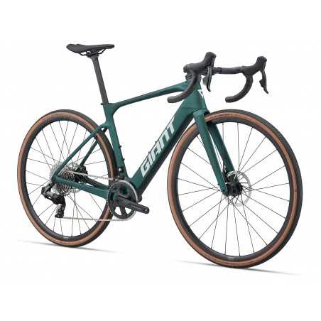 MotorSyncDriveMove Plus Hub drive 75Nm max ControllerMode support switch from SRAM Blips DisplayGiant RideControl GO, frame-integrated LED console Optional wireless ANT+ display BatteryEnergyPak Smart 400Wh by Panasonic, Aluminium casing with highest safety standard (UL2271, EN50604), CO2 Neutral production, 2300 charging cycles. EnergyPak Plus 200 range extender compatible ChargerGiant EnergyPak 4A smart charger, 60% in 1:45 ConnectivityGiant RideControl App enabled ANT+ wireless display signal with e-bike profile SizesS, M, ML, L, XL ColoursMatte Kelp Forest / Black FrameAdvanced-grade composite,12x145 thru-axle ForkAdvanced SL-Grade Composite, Full-Composite OverDrive Aero Steerer, 12x100mm thru-axle, Disc Shock- HandlebarGiant Contact SL D-Fuse 31.8 alloy StemContact SL Aerolight 31.8 alloy SeatpostGiant D-Fuse, Composite, 14mm offset SaddleGiant Approach PedalsPEDALS NOT SUPPLIED ShiftersSram Rival eTap AXS 1x12 Front Derailleur- Rear DerailleurSram Rival XPLR eTap AXS BrakesSram Rival eTap HRD, Paceline 160mm center-lock [F] 160mm 6-bols [R] Brake LeversSram Rival eTap AXS HRD CassetteSram Apex XPLR XG-1251, 10x44T, 12-speed ChainSram Rival 12-speed CranksetSram X-SYNC 46T BCD107 chain ring Praxis E Crank Carbon ISIS Bottom BracketGiant E+ System BBSS RimsGiant P-X2 Alloy Disc Wheel System, Tubeless Ready, 19mm inner width, 12mm thru-axle, w/ Sapim spoke E-Light [R] Race [F], e-bike optimised SpokesSapim spoke E-Light [R] Race [F], e-bike optimised TyresSCHWALBE G-ONE ALLROUND Perf, RaceGuard, Brown side-wall 700x35C 67EPI Tubeless LightingSeatpost clamp integrated tail light.