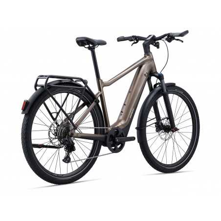 MotorGiant SyncDrive Pro 2 85Nm, powered by Yamaha, PedalPlus 6-Sensor technology ControllerGiant RideControl Ergo 2 remote, Smart Assist automatic mode, 5 support levels, USB-C (10W) DisplayGiant RideDash EVO, high-angle visibility, 3" full color LCD display, on-board navigation BatteryGiant EnergyPak 800Wh, 22700 Lithium cell technology, Aluminium casing with highest safety standard (EN50604) ChargerGiant EnergyPak 6A smart charger, 60% charge in 3:00h ConnectivityGiant RideControl App enabled ANT+ wireless display signal with e-bike profile ColoursSatin Truffle / Matte Black FrameALUXX aluminium, Overdrive 1.8" - 1.5" head tube, integrated battery, integrated KSA40 kickstand mount ForkSR Suntour XCR34 Air Boost, 100mm travel, Hydraulic Lockout, 15x110mm AH Axle HandlebarGiant Contour Comfort Riser 31.8x690mm GripsGant Connect Ergo Max Cork w/bar-end StemGiant Contour EVO integrated 16⁰ (S/M:80mm L/XL/XXL 100mm) SeatpostGiant 30.9mm, 2-bolt Micro Adjustable, Forged Aluminium SaddleSelle Royal Vivo Ergo Moderate Unisex PedalsAluminium Platform ShiftersShimano Deore, LinkGlide 1x10 Rear DerailleurShimano Deore LinkGlide BrakesTektro HD-M745 Orion, 4-piston, hydraulic disc, 180mm Brake LeversTektro HD-M745 Orion CassetteShimano LinkGlide, CS-LG400-10, 11-43T, 10-speed ChainShimano LinkGlide, CN-LG500 CranksetForged Alloy Direct spider/chainguard 46T Steel narrow/wide chainring RimseX25, Tubeless Ready, 622x25 Aluminium HubsGiant eTracker, [F] 110x15 [R] 148x12 SpokesStainless steel, e-bike optimised TyresCrosscut Gravel 1, 700x57c, Foldable, Tubeless Ready ExtrasKSA40 direct mount kickstand LightingRecon E HL100 StVZO [F] AXA NYX 6-12V E-bike tail light with brake sensor [R] Lock CarrierMIK HD rack. System bag & basket compatible Fender/ChainguardAluminium.