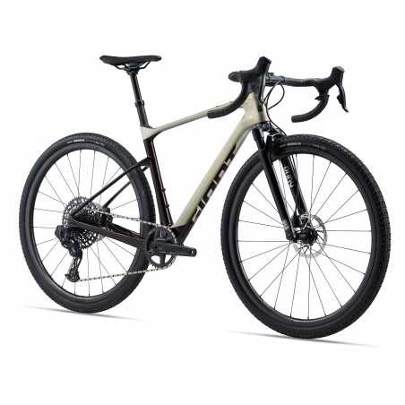 ColoursGloss Golden Haze/Cordovan FrameAdvanced-grade composite, 12x142mm thru-axle, disc, flip chip dropout ForkRockShox Rudy Ultimate XPLR, 40mm, Charger Race Day damper12x100mm thru-axle ShockN/A HandlebarGiant Contact SL XR D-Fuse, 31.8mm S:44cm, M:46cm, M/L:46cm, L:48cm, XL:48cm GripsStratus Lite 3.0 StemGiant Contact, 8-degree S:50mm, M:60mm, M/L:70mm, L:70mm, XL:80mm SeatpostPost Moderne, dropper, 30.9mm with 30mm of suspension S:415mm / 100mm drop M:415mm / 100mm drop M/L: 415mm / 100mm drop L:415mm / 100mm drop XL: 415mm / 100mm drop SaddleGiant Approach SL PedalsPEDALS NOT SUPPLIED ShiftersSRAM Rival eTap AXS, 1x12 Front DerailleurN/A Rear DerailleurSRAM GX Eagle AXS BrakesSRAM Rival eTap AXS hydraulic, SRAM PaceLine rotors [F]160mm, [R]160mm Brake LeversSRAM Rival eTap AXS hydraulic CassetteSRAM XG-1275, 12-speed, 10x52 ChainSRAM GX Eagle CranksetSRAM Rival D1 DUB, 40t S:170mm, M:172.5mm, M/L:172.5mm, L:175mm, XL:175mm Bottom BracketSRAM DUB, press fit RimsGiant CXR 1 X1 Carbon Disc WheelSystem, [F] 25.8mm, [R] 25.8mm Hubs[F] Giant CXR X alloy, CenterLock, 12mm thru-axle, [R] Giant CXR X alloy, 60t ratchet driver, CenterLock, 12mm thru-axle SpokesSapim Laser TyresMaxxis Rambler, 700x45c, tubeless prepared ExtrasFactory tubeless set up Max Tyre Clearance53mm max tyre size in "long" flip chip position, 45mm max tyre size in "short" flip chip position Max Chainring SizeSRAM Wide 1x 44T. Shimano GRX 1x 42T.