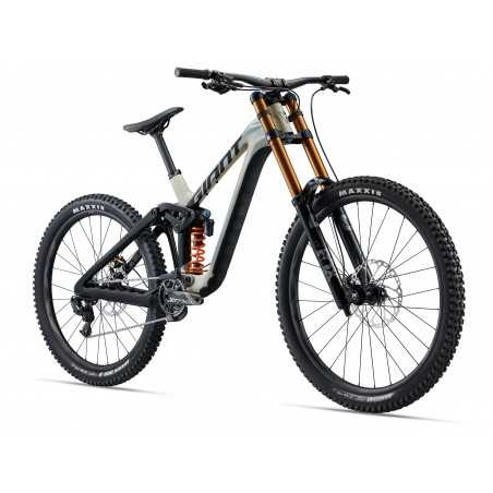 ColoursGloss Shoreline/Carbon FrameAdvanced-grade composite front and rear triangles, 200mm Maestro suspension, flip chip - headset, flip chip - dropout DH, flip chip - Maestro 3, 12x157mm thru-axle, 27.5 or 29-inch rear wheel compatible ForkFox 40 Factory, GRIP2 damper, 203mm, 20x110, custom tuned for Giant ShockFox DHX2 Factory, SLS coil, 225/75, custom tuned for Giant S/M #425, M/L #450, L/XL #475 HandlebarGiant Contact SL TR35, composite, 800x35mm, 20mm rise GripsGiant Tactal Pro Single StemTruVativ Descendant Direct Mount 35 S/M:50mm, M/L:50mm, L/XL:50mm SeatpostGiant Contact, 30.9mm, 0 offset, 400mm SaddleGiant Romero PedalsPEDALS NOT SUPPLIED ShiftersSRAM GX Eagle DH, 1x7 Front DerailleurN/A Rear DerailleurSRAM GX Eagle DH BrakesShimano Saint M-820, hydraulic, Shimano RT-66 rotors [F]220mm, [R]203mm Brake LeversShimano Saint BL-M820 CassetteSRAM GX DH, 11-25 ChainSRAM PC 1110 CranksetTruVativ Descendent DH, 34t, 56.5mm chainline S/M:165mm, M/L:170mm, L/XL:170mm Bottom BracketSRAM DUB, threaded, 83mm RimsGiant AM30, alloy, 28-hole, 30mm inner width Hubs[F] alloy, sealed cartridge, 6-bolt, 20x110mm [R] alloy, 72t pawl driver, sealed cartridge, 6-bolt, 12x157mm SpokesSapim Laser, straight pull, DBL Tyres[F] Maxxis Assegai 29x2.5 WT, 3C MaxxGrip, DH, TR [R] Maxxis Minion DHR II 27.5x2.4 WT, 3C, MaxxGrip, DH, TR tubeless ExtrasFactory tubeless set up, MRP SXg chain guide, full downtube protector Max Tyre Clearance2.5" Max Chainring Size36t.