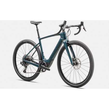 E-Bike Motor New Specialized 1.2 SL Custom Lightweight Motor Battery Specialized SL1-320, fully integrated, 320Wh UI/Remote Specialized MasterMind TCU, percentage of remaining charge, 120 possible display configurations, MicroTune assist adjustment, over-the-air updates, ANT+/Bluetooth®, w/Handlebar remote Charger Custom charger, 48V System w/ SL system charger plug Wiring Harness Custom Specialized wiring harness w/ charge port Frameset Frame FACT 11r carbon, front/rear thru-axles, fully integrated down tube battery, internal cable routing, fender/rack mounts, 12x142mm Seat Binder Specialized Alloy, 31.8 Suspension Fork Future Shock 3.2 w/ Smooth Boot, 12x100mm thru-axle, flat-mount disc Brakes Front Brake SRAM APEX, hydraulic disc, 180mm Rear Brake SRAM APEX, hydraulic disc, 160mm Drivetrain Shift Levers SRAM Apex eTap AXS Rear Derailleur SRAM X1 Eagle AXS Cassette SRAM PG1210, 12-Speed, 11-50t Chain SRAM NX Eagle, 12-Speed Crankset SRAM Alloy DUB Crank Arms Chainrings SRAM X-Sync Eagle, 107 BCD, 44T Wheels & Tires Front Wheel DT Swiss G540 rim, 24mm internal width, tubeless ready, 24h, Specialized full sealed bearing thru axle hub, centerlock disc, DT Swiss Champion 14G stainless steel spokes, DT Swiss brass nipples Front Tire Tracer Pro, 700x42c Rear Tire Tracer Pro, 700x42c Rear Wheel DT Swiss G540 rim, 24mm internal width, tubeless ready, 24h, Specialized full sealed bearing thru axle hub, centerlock disc, DT Swiss Champion 14G stainless steel spokes, DT Swiss brass nipples Inner Tubes 700x32/50mm, 48mm Presta valve Cockpit Stem Future Stem Comp Handlebars Specialized Adventure Gear Hover, 103mm drop x 70mm reach x 12º flare Tape Supacaz Super Sticky Kush Saddle Body Geometry Power Sport SeatPost Trans-X Dropper, 50mm Travel Weight 14.55kg (32 lb, 1.2 oz).