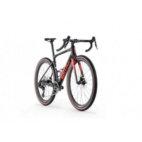 Frameset Frame: Kaius 01 Premium Carbon with Aerocore Design | ICS Technology Stealth Cable Routing | UDH Dropout (Universal Derailleur Hanger) | TCC Race Compliance Level | Flat Mount Disc | 12 x 142mm Thru-Axle Fork: Kaius 01 Premium Carbon | ICS Technology, Stealth Cable Routing | TCC Race Compliance Level | Stealth Dropout Design | Flat Mount Disc | 12 x 100mm Thru-Axle Cockpit Stem: BMC RSM 01 | Integrated Cockpit System Technology Handlebar: BMC HB D4 03, 0, 12 | Alloy 6061 | Endurance Geometry | 125mm drop, 70mm reach, 12° flare Seat Seatpost: Kaius 01 Premium Carbon D-Shaped Seatpost | 15mm Offset | D-Fender Compatible Saddle: Fizik Vento Argo X5 | 140mm Drivetrain Crankset: SRAM Rival XPLR AXS Wide (FC-RIV-1W-E1) Chainrings: 42T Cassette: SRAM Rival XPLR (CS-XG-1351-E1) Cassette Size: 10-46T Chain: SRAM Rival (CN-RIV-E1) Rear Derailleur: SRAM Rival XPLR AXS (RD-RIV-1E-E1) Shifters: SRAM Rival AXS (ED-RIV-E1) Gears: 1 x 13 Bottom Bracket: SRAM Press Fit DUB Brakes Brake Levers / Calipers: SRAM Rival AXS (ED-RIV-E1) Rotors: SRAM Paceline | Centerlock Rotor Size (F/R): 160 / 160mm Wheels Rims: CG 40 Carbon | Tubeless Ready | 40mm Hubs (F/R): CG 40 Tires: Pirelli Cinturato Gravel H | 40mm Tubeless Information: Tubeless Rim | Tubeless Tires Accessories In the Box: Aerocore Design Carbon Bottle Cages Additional Information Tire Clearance: 44mm measured tire Weight without Pedals: 8.37kg | Size 54 with all accessories ASTM Classification: Level 2 System Weight Limit: 120kg.
